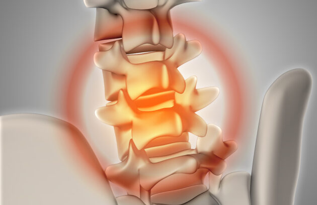 3D render of a skeleton with spine highlighted showing pain Receber o diagnóstico de hérnia de disco pode assustar —…